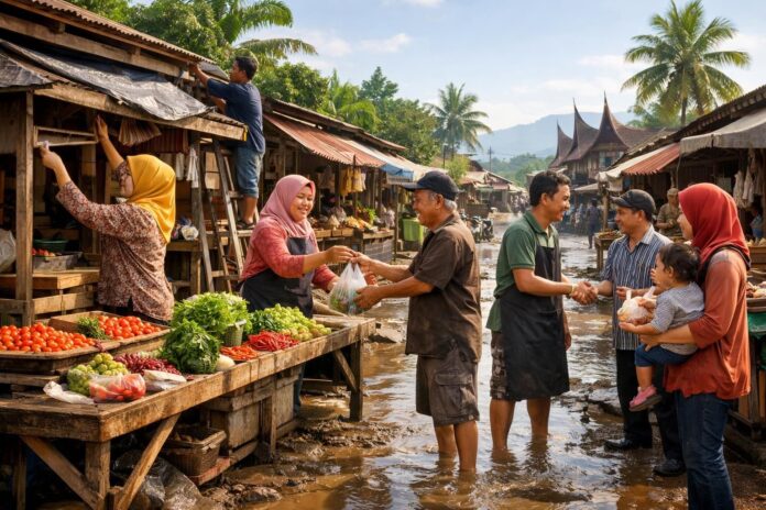 Pemulihan ekonomi pascabencana banjir di wilayah Sumatra menjadi fokus utama pemerintah dalam memastikan kehidupan masyarakat kembali berjalan normal. Setelah fase tanggap darurat dan pemenuhan kebutuhan dasar dilalui, pemerintah mengarahkan kebijakan pada penguatan ekonomi lokal sebagai fondasi pemulihan jangka menengah dan panjang. Pendekatan ini menempatkan pelaku usaha mikro, kecil, dan menengah (UMKM) serta pekerja lokal sebagai aktor utama kebangkitan ekonomi di daerah terdampak, sekaligus memastikan pemulihan tidak berhenti pada pembangunan fisik semata, tetapi juga menyentuh keberlanjutan mata pencaharian warga.