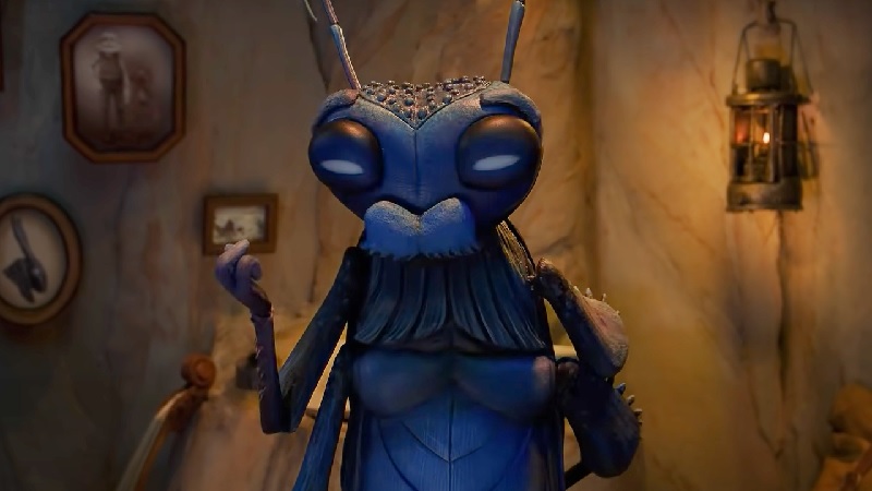 Dalam video teaser tersebut, Cricket tampil selayaknya seekor jangkrik. Berbeda dengan gambaran karakter ini di versi Disney. Jangkrik ini berwarna biru dengan kumis tebal. Cricket sedang ada di sebuah ruangan berpencahayaan temaram dan tengah menulis di sebuah buku dengan pena bulu.