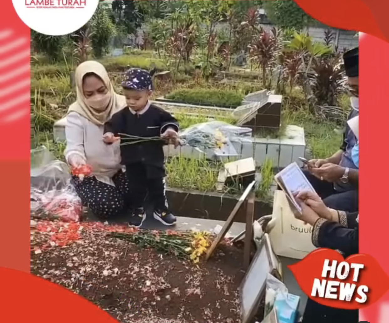 Salah satunya diposting oleh akun, @lambetura_official. Dalam video itu, terlihat Gala yang belum mengertintengah menaruh bunga di pusara Vanessa dan Bibi.