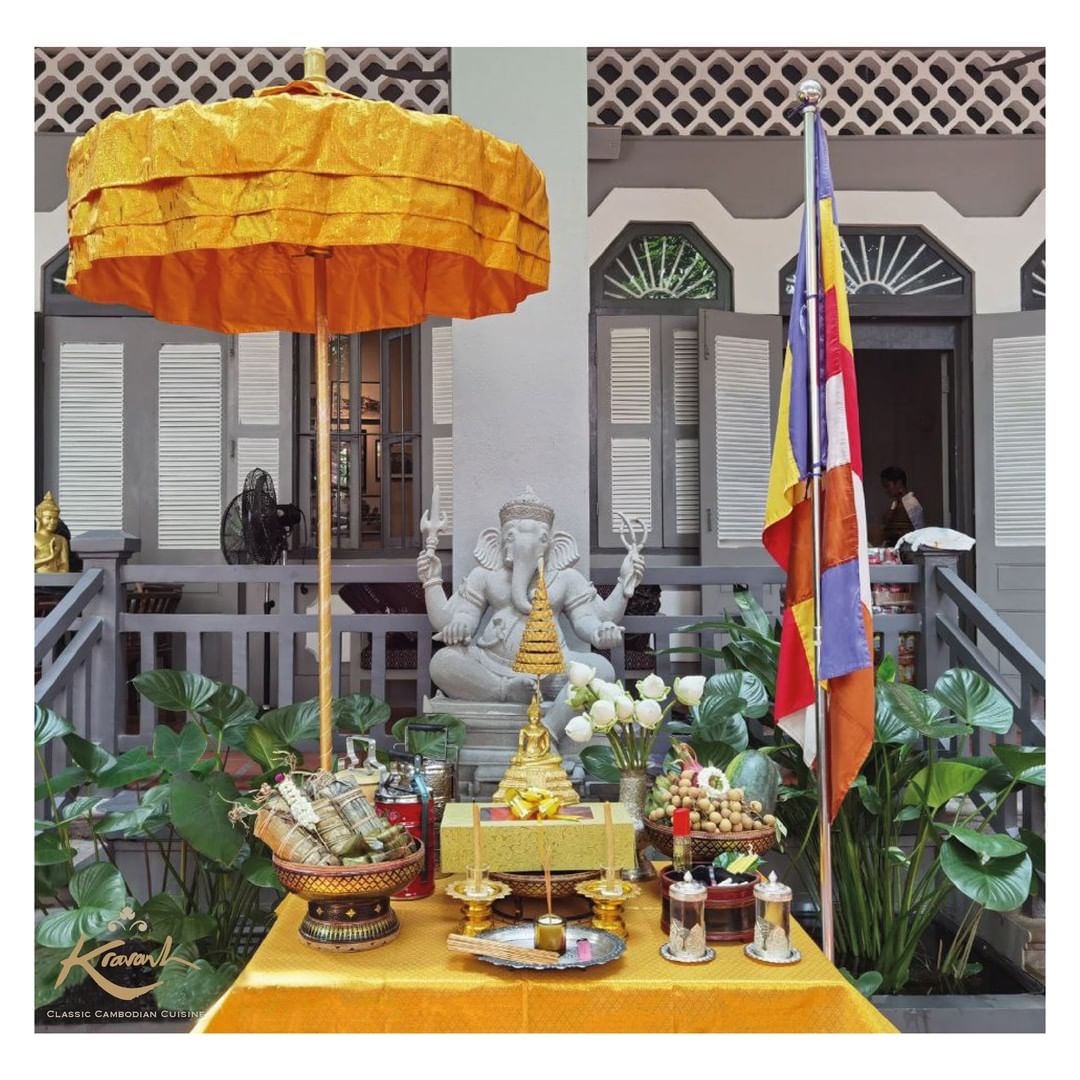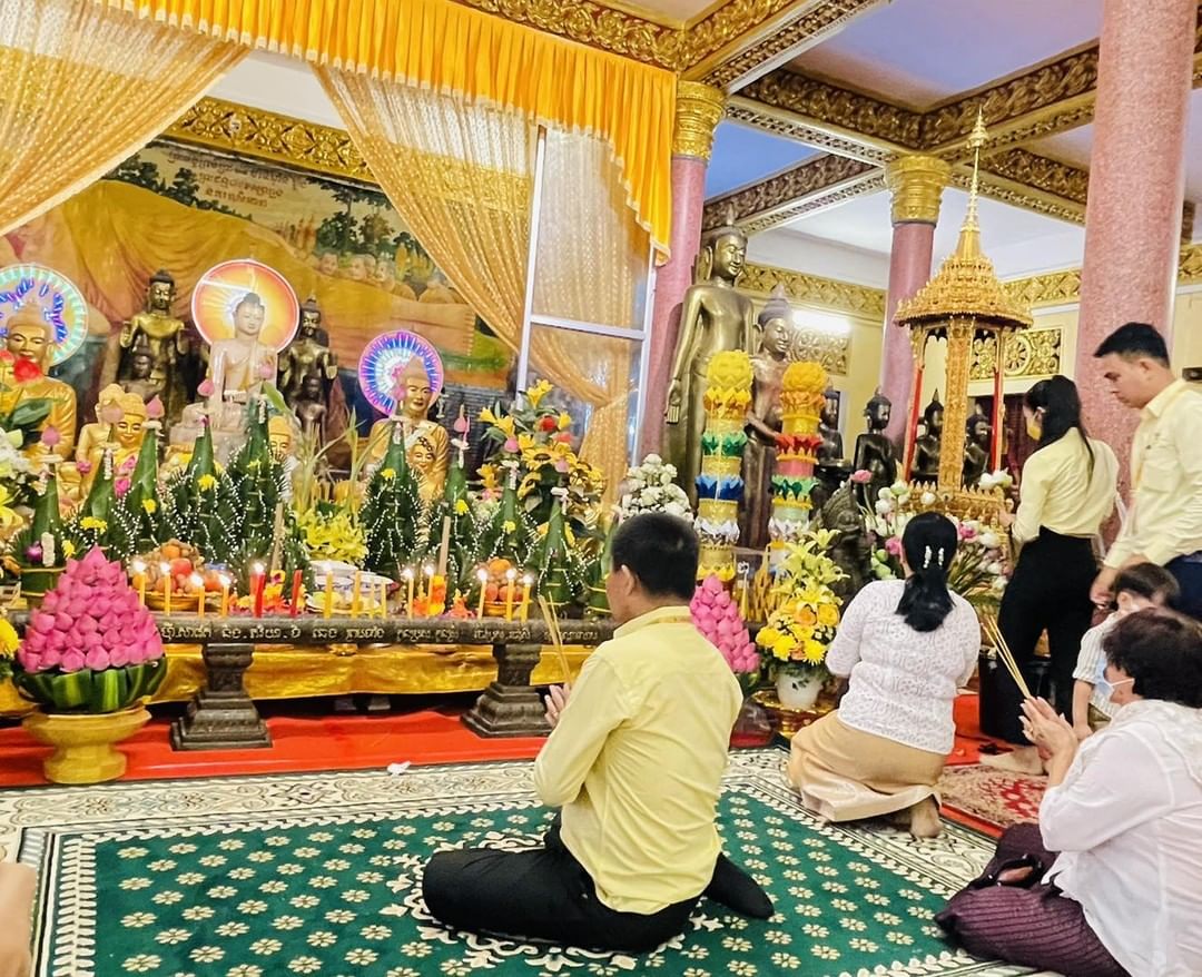 Cara orang Kamboja merayakan festival ini dengan cara mengunjungi pagoda untuk mempersembahkan makanan kepada mereka yang telah mati. Makanan tersebut diserahkan dengan cara ditaruh di tanah atau melemparnya ke lapangan. Selain diberikan kepada arwah yang mati, sesajen makanan tersebut juga diberikan kepada para biksu. (Zerena Rahayu)