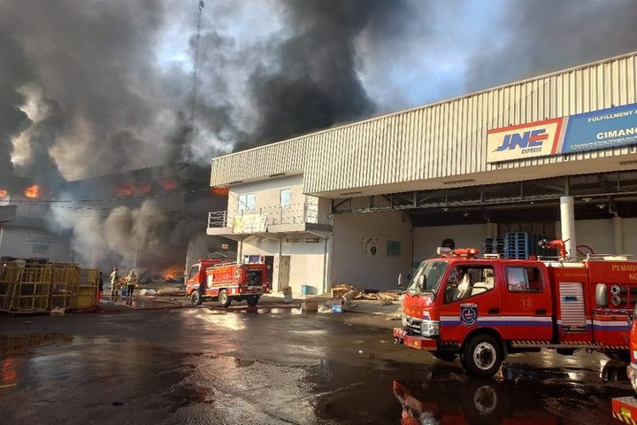 Kebakaran Hanguskan Gudang Penyimpanan JNE di Pekapuran Depok