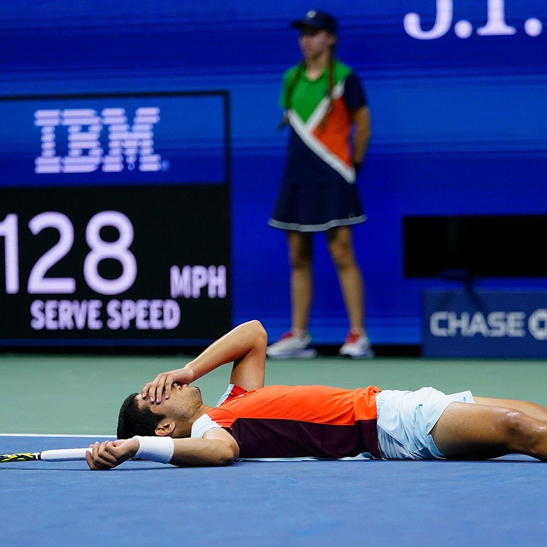 Petenis berusia 19 tahun tersebut mengalahkan Jannik Sinner setelah bertanding selama 5 jam 15 menit. Pertandingan yang berlangsung di Arthur Ashe Stadium, Amerika Serikat tersebut berakhir pada pukul 02.50 Kamis dini hari waktu setempat. menjadikan pertandingan tersebut sebagai yang paling lama kedua setelah berhasil lampaui rekor sebelumnya untuk penyelesaian terakhir di New York pada 02.26 pagi.