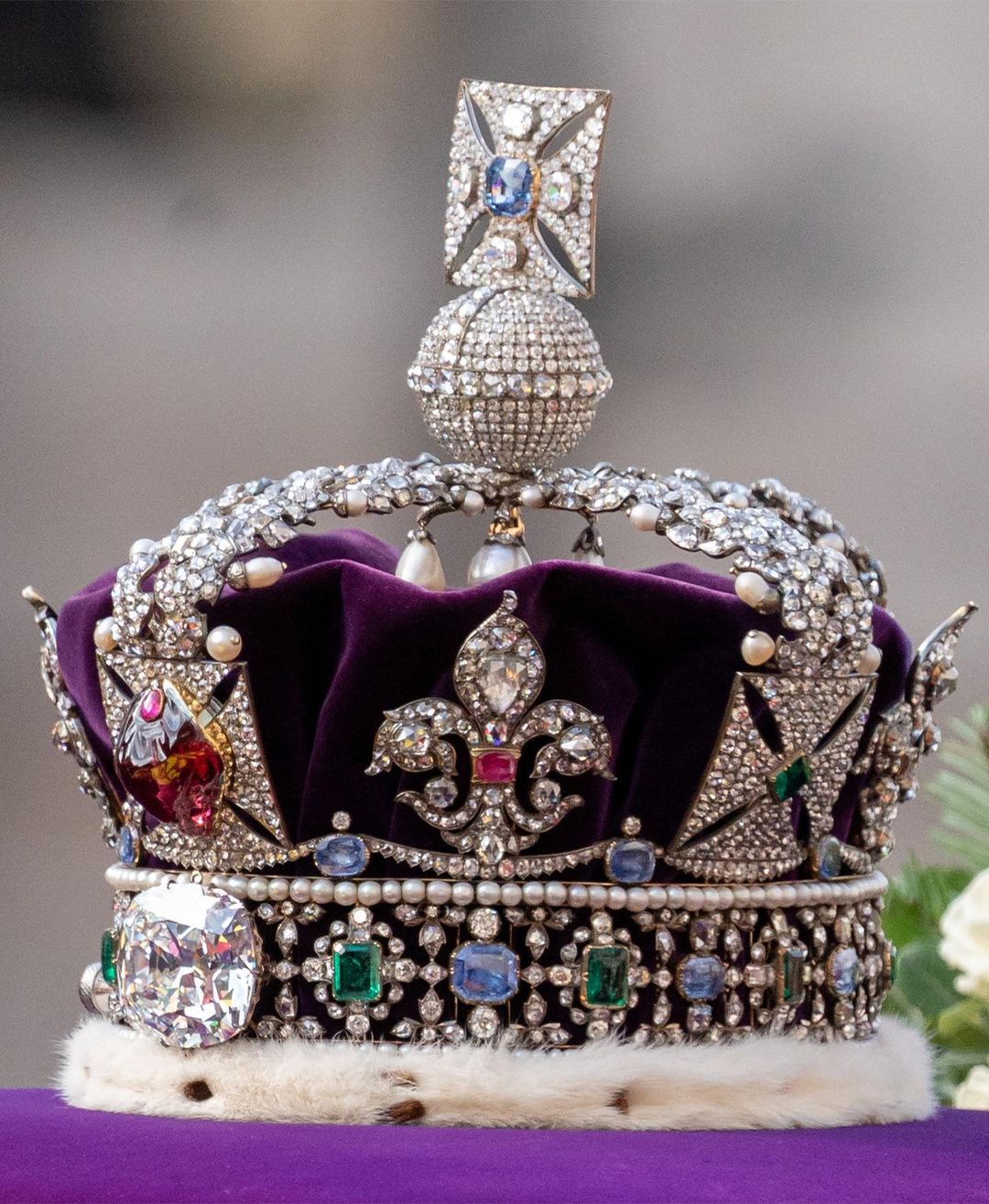 Dibuat pada 1937, mahkota ini miliki ornamen mewah yang terdiri dari berlian Cullinan 317 karat, 3.000 batu permata, termasuk 2.868 berlian, 273 mutiara, 17 safir, 11 zamrud, dan lima rubi. Berat dari mahkota ini sendiri mencapai lima pons atau 2,26 kg.