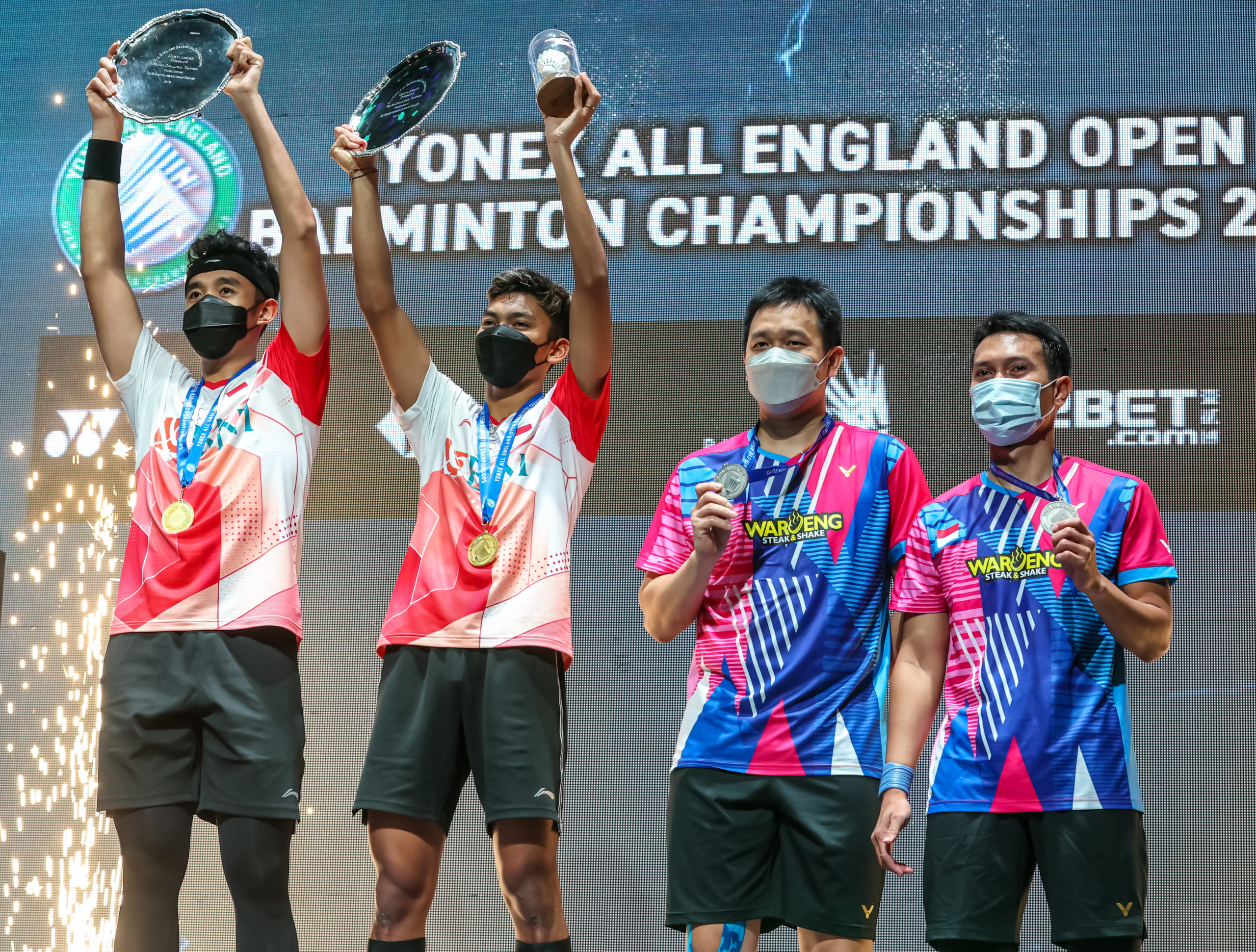 MATA INDONESIA, BIRMINGHAM – Ganda putra Muhammad Shohibul Fikri/Bagas Maulana menjadi juara All England 2022 dikeikutsertaaan pertamanya. Berapa jumlah hadiah yang dikantongi mereka?