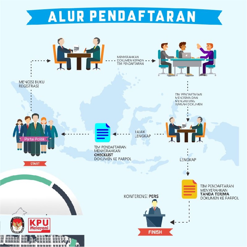 KPU hanya memproses parpol yang memenuhi persyaratan kelengkapan dokumen. Setelah dokumen pendaftaran lengkap, KPU segera menerbitkan surat atau berita acara pendaftaran.