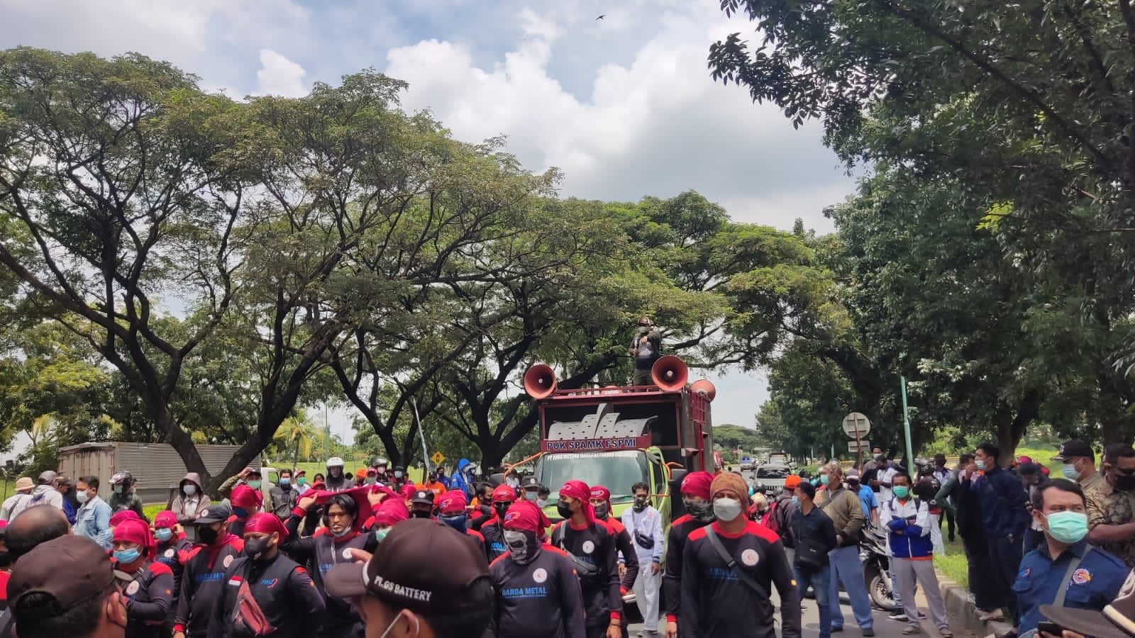 “Manajemen PT GS Battery Semarang kelihatannya tidak suka kepada kawan kawan yang sudah membentuk Serikat pekerja FSPMI di PT GS Battery Semarang, sehingga dibuatlah konflik yang membuat kawan kawan akhirnya dipecat sepihak,” ujar Kang Edoy di tengah aksi, Kamis 17 Februari 2022.