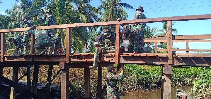 TNI Gotong Royong Perbaiki Jembatan di Maybrat yang Dirusak KNPB