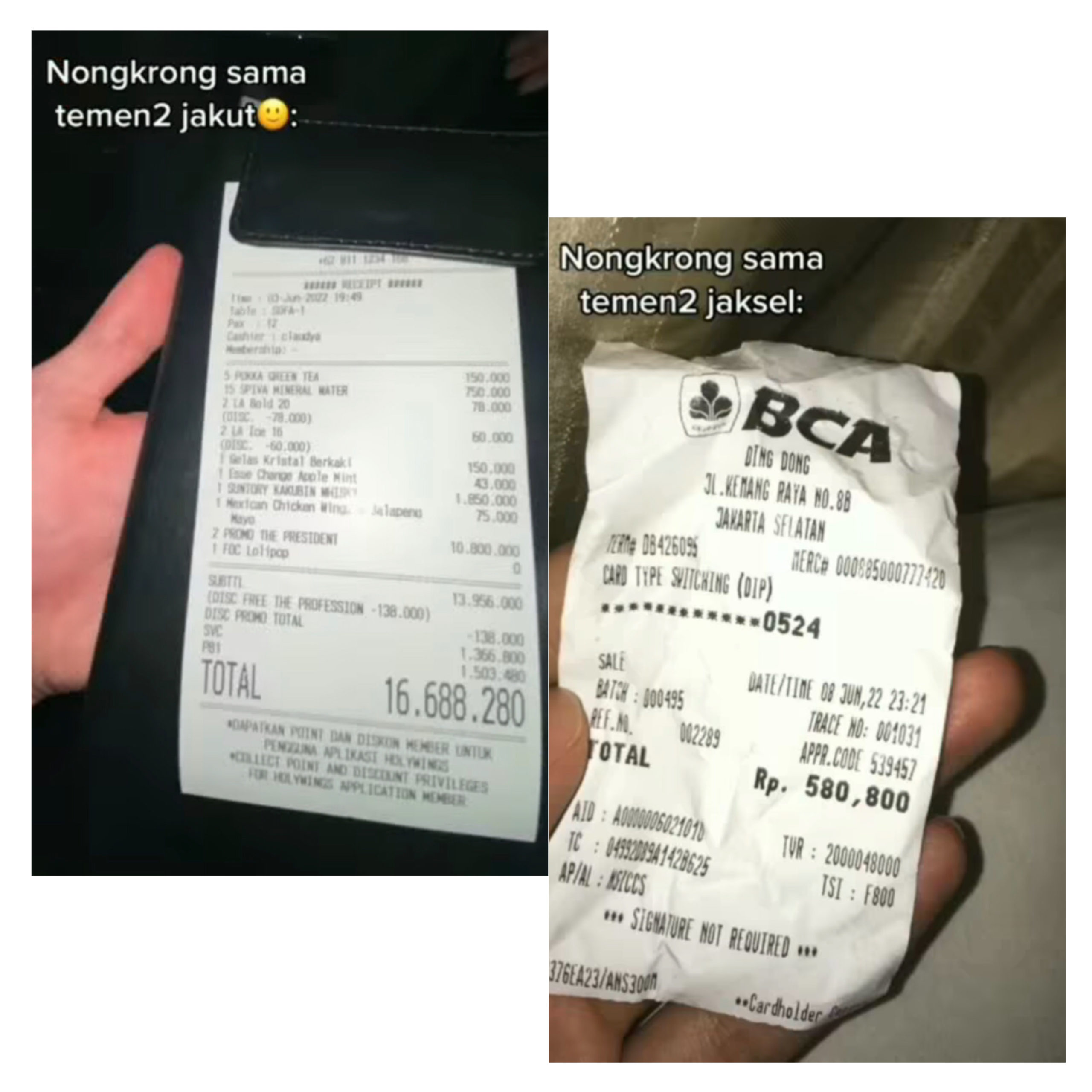 Struk itu pun sontak bikin netizen geleng-geleng. Ia memperlihatkan total makan di Jakarta Selatan sebesar 580 ribu Rupiah. Sedangkan struk di resto Jakarta Utara mencapai 16 juta Rupiah.