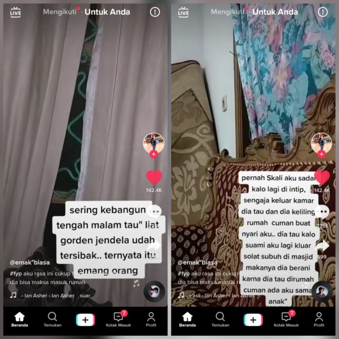 “Sering kebangun tengah malam, tau tau lihat gorden jendela udah tersibak, ternyata itu emang orang,” tulisnya.